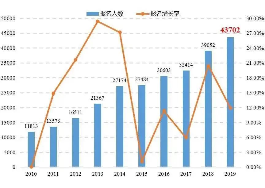 图4 2010年至2019年专利代理师资格考试报名情况